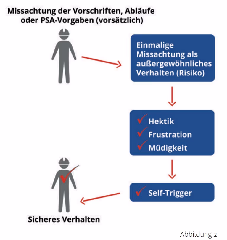 Wenn zu diesem „Selbstvertrauen“ noch Hektik, Frustration, Müdigkeit und Selbstüberschätzung dazukommen, treffen normale Leute, gute Mitarbeiter fatale Entscheidungen. Sie machen Ausnahmen und brechen nicht nur Vorschriften, sondern auch ihre eigenen Regeln (siehe Abbildung 2).