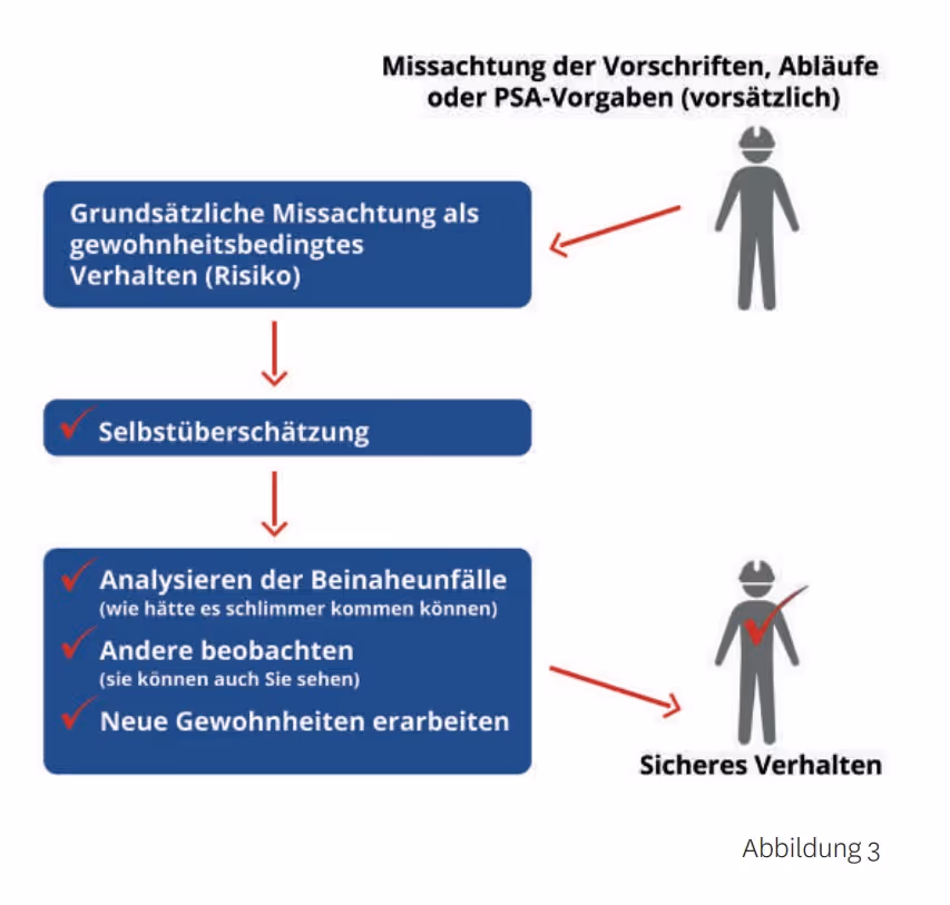 Auch normale Menschen und gute Mitarbeiter treffen also folgenschwere Entscheidungen, die durch Hektik, Frustration, Müdigkeit und Selbstüberschätzung beeinflusst sind. Diese Entscheidungen, mit denen wir unsere eigenen Grenzen überschreiten, sowie unbeabsichtigte Fehler sind die Ursache von 95 Prozent aller Verletzungen. Sie passieren uns allen – Tag für Tag.